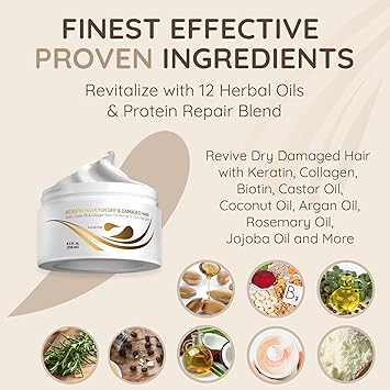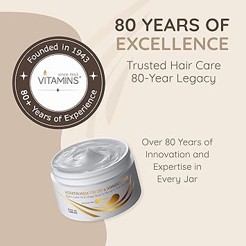 VITAMINS hair cosmetics Keratin Hair Mask Deep Conditioner - Biotin with Castor Oil Protein Conditioning Repair Treatment for Thick Dry Damaged or Color Treated Curly Straight Coarse
