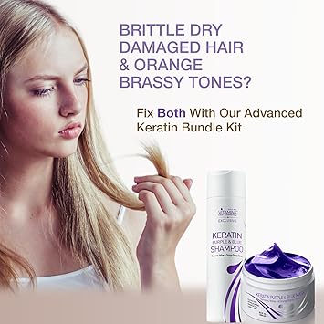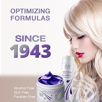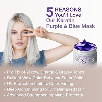 VITAMINS hair cosmetics Keratin Purple Blue Hair Mask and Shampoo Kit - Conditioner Anti Brassiness Toner Violet Set for Bleached Blonde Platinum Silver White Gray Dry Damaged