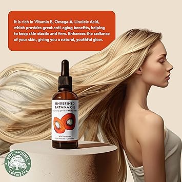 - Hair Growth and Nourishment: Rich in vitamins and essential fatty acids, Batana oil deeply nourishes the scalp to support healthy hair growth. It helps repair damage, prevents breakage, and provides lasting moisture, leaving hair softer, more manageable, and with a brilliant shine.