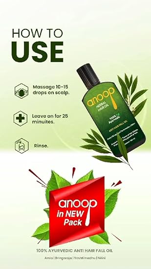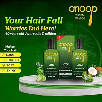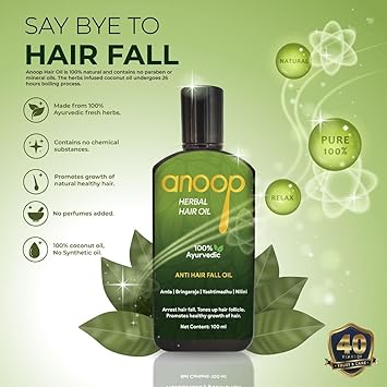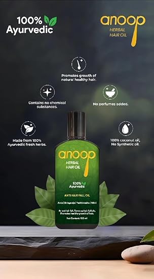 Anoop Herbal Hair Oil is 100% Ayurvedic. Contain No chemical substances. Promotes growth of natural healthy hair. No perfumes added. 100% coconut oil, No Synthetic oil.