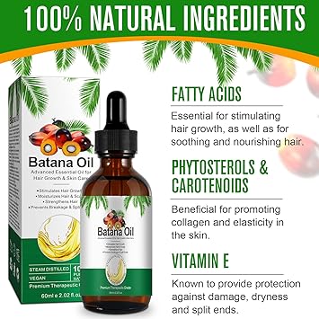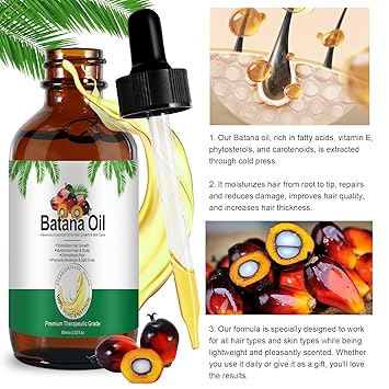 Cold-pressed from the nut of the plant, Batana Oil's antioxidant activity makes it an ideal addition to cosmetic products, helping to nourish and protect the skin from environmental stressors. How to use: Apply Batana Oil to damp or dry hair, focusing on the ends for added moisture, or use it as a conditioning treatment for extra shine.