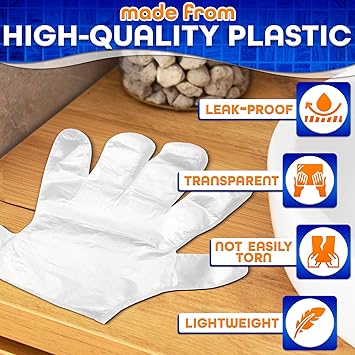 200 Pcs Paraffin Gloves for Hands - Lightweight, Disposable, Transparent, Leak-Proof, Universal Plastic Wax Soft, Easy to Use Cooking, Eating, Cleaning, Hair Coloring