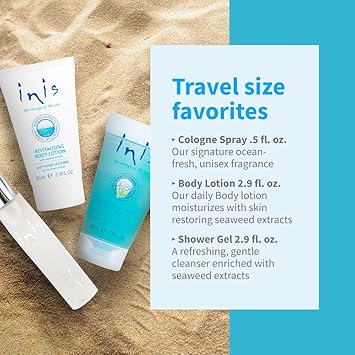 Inis the Energy of Sea Trio Gift Set - Travel Size Toiletries for Women and Men Body Wash Lotion Ocean Fresh Unisex Cologne