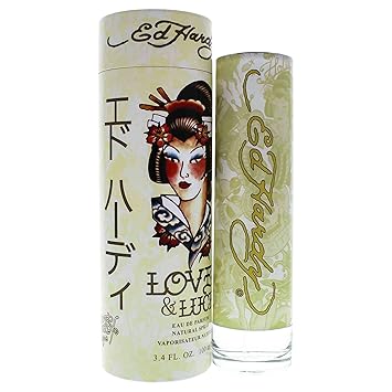 - Ed Hardy Love & Luck for women is described as “soft and elegant”. The fragrance was developed by perfumer Adriana Medina; the notes include bergamot, blood orange, red sake accord, black currant, pink peppercorn, nectarine, jasmine, forbidden plum, sensual musk, cedarwood, sandalwood and patchouli.