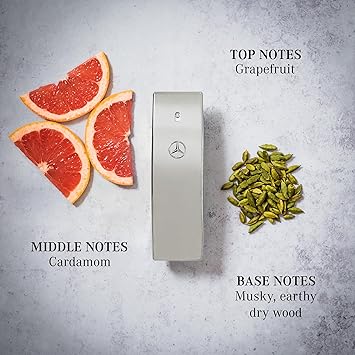 Mercedes-Benz Club Cologne for Men - 3.4 Fl Oz Eau De Toilette Perfume Spray Man Woody & Musky Scent Luxury Long Lasting Fragrance with Notes Of Grapefruit, Cardamom Earthy Dry wood