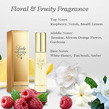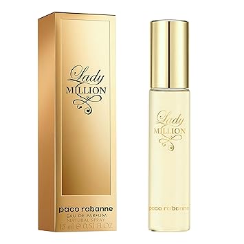 Indulge in the luxurious and captivating scent of Paco Rabanne Lady Million Eau de Parfum (EDP) Spray, now available in a convenient 15 ml size. This fragrance is a bold and glamorous expression of femininity, combining fresh floral and woody notes to create a sensual and alluring aroma. The scent opens with a burst of vibrant neroli and raspberry, leading to a heart of jasmine and gardenia, and finishes with a warm base of patchouli and honey. Perfect for any occasion, Lady Million is designed for the confident and sophisticated woman who enjoys making a statement. Whether you're heading out for a special evening or simply want to elevate your everyday style, this 15 ml bottle is perfect for on-the-go application. Experience the elegance and allure of Paco Rabanne Lady Million Perfume and let its luxurious fragrance enhance your presence.