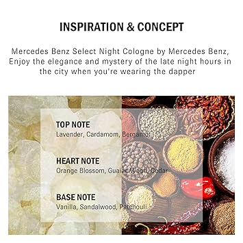 Mercedes-Benz Select Night by Mercedes-Benz is an Amber Spicy fragrance for men. This fragrance was launched in 2019 and the nose behind this fragrance is Olivier Cresp. Top notes are Lavender, Cardamom and Bergamot; middle notes are Orange Blossom, Guaiac Wood and Cedar; base notes are Vanilla, Sandalwood and Patchouli. Our products are aimed at design conscious customers and stand out in their expression of modern luxury, perfect execution and being timeless: every Mercedes-Benz product envelopes these unique brand values. The products stand out by their defined proportion, clear lines and highly emotional details. Highest quality in every detail is part of the core of the luxury brand have always been closely intertwined. More than all the other senses, the sense of smell determines whether we feel at ease with ourselves and in our surroundings. We keep this philosophy for our fragrances and we respect the noble codes of selective perfumery.