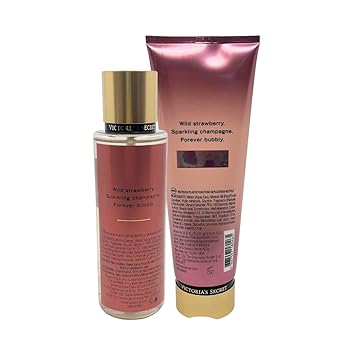 Discover the allure of Victoria's Secret Strawberries & Champagne Fragrance Mist and Lotion Set. This set for women seamlessly merges the world of luxurious perfume with nurturing body care. Immerse yourself in the captivating notes of Wild Strawberries and Sparkling Champagne, painting a picture of a fruity floral landscape that's irresistibly alluring. Elevate your daily beauty regimen with the dual power of our Victoria’s Secret refreshing body mist and our intensely hydrating 24-hour lotion.