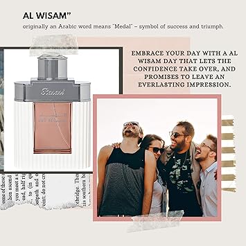 - ABOUT WISAM: Al Wisam Day pays tribute to the underlying spirit of the modern man. An epitome of strength and vitality this breezy fresh fragrance will energize your senses and propel you to achieve greater heights of success. Wisam originally an Arabic word means “Medal” symbol of success and triumph. The sturdy flint glass bottle encased in chrome and white sheath definitely adds an urban, stoic timeless appeal to this offering. If you want success to chase you, Al Wisam Day is your perfume.
