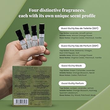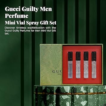 Experience the timeless sophistication of Gucci with the Gucci Guilty Perfume for Men Variety Mini Vial Spray Gift Set, featuring four iconic fragrances in 0.05-ounce mini vial sprays: Guilty EDT, Guilty EDP, Guilty Black, and Guilty Parfum. This luxurious set is perfect for travel, sampling, or gifting, offering a curated selection of captivating scents that embody confidence, elegance, and bold style. Whether exploring new fragrances or gifting a loved one, this versatile set showcases the essence of Gucci’s signature perfumes, crafted for the modern man who appreciates luxury and variety.