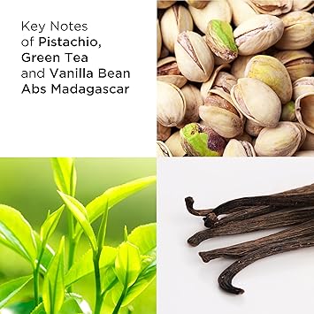 This refreshing, playful citrus fragrance evokes pure, nostalgic fun with notes: bergamot oil Italy, pistachio husk accord, green tea accord, heliotrope, vanilla bean abs Madagascar and white amber. Indulge in the delightful nutty nuances and sparkling green tea of this scent.