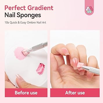 - Easy to Use: The unique silver pen has a built-in retractable claw, press the tip to grip the sponge tightly, preventing your hands from getting nail polish. Nail design tools for color gradient and flowering manicure nail art