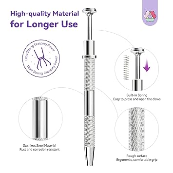 - Stainless Steel Nail Art Tool: The grabbing pen is made of high-quality Stain Steel, which is durable and rust-proof. The surface texture is non-slip, and the built-in spring can easily grab small items. You can rest assured to use it for a long time