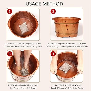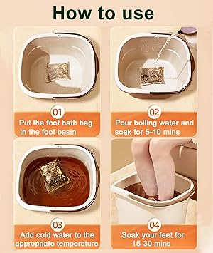 - Usage : Soak in boiling water above 90°C for 5 minutes and wait for the water temperature to cool down to 45°C,15-30 minutes each time,it 3 to 5 times per week,Use as foot soak or full body bath as you like or for your convenience,Put the bag directly into the water when using it.The natural ingredients will work their effect, helping to relieve stress, reduce fatigue, and promote overall well-being.