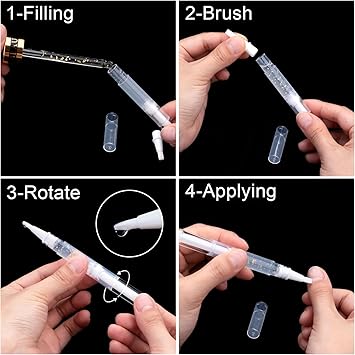 - Easy To Use - Easy to filling with pipette. You just need to filling with liquid into the cuticle oil pen, and then installed the white brush tip. Twist the pen until the liquid comes out, then you can make the liquid on evenly and paint where you need it. Remember to cover the pen cap after use.