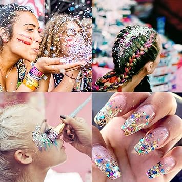 - High Quality: Allstarry foil glitters are made of cosmetic grade material. Non-toxic and odorless, safe to wear on the skin, no harm to acrylic nails or your body decorations. It can be applied for your face, body, cheeks, make up, nail decorations. Also suitable for arts, resin, epoxy and crafts supplies, go well with various hairstyle or costume.