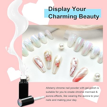 - Easy to Use: Allstarry chrome powder with gel polish stuck well to the nails that applied chrome top coat. You can easily get salon-quality chrome results by using a chrome nail polish kit. To make it easy to use the chrome nail powder kit, we provide detailed steps and tips in the images. Use it and try more DIY nails with chrome hearts nail charms, flatback rhinestones, and nail stickers.
