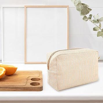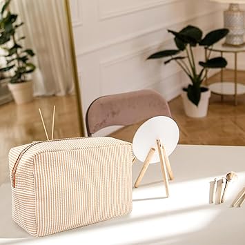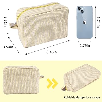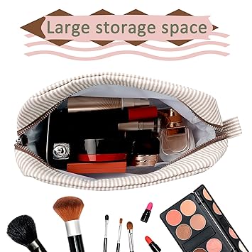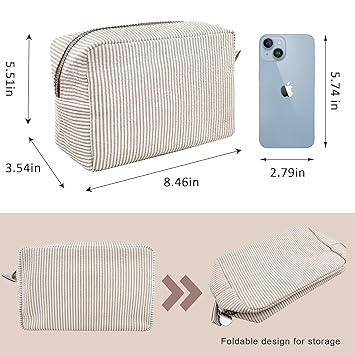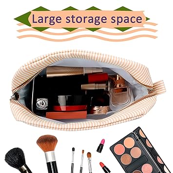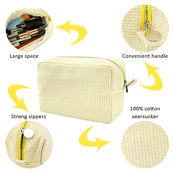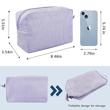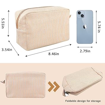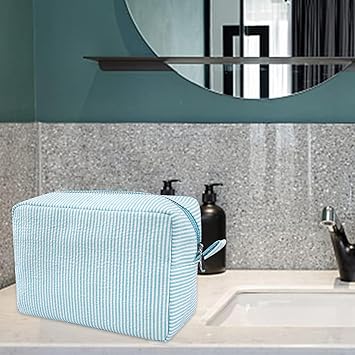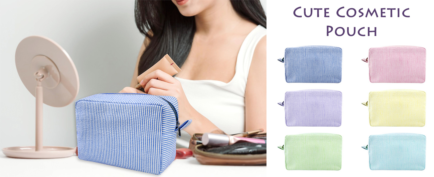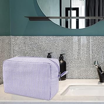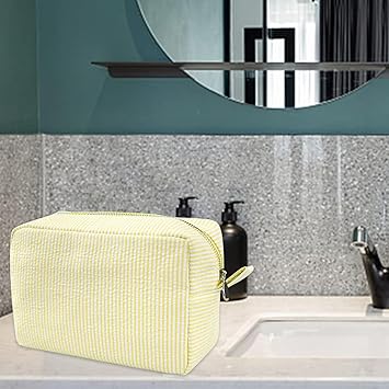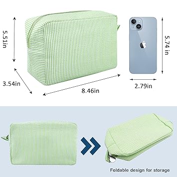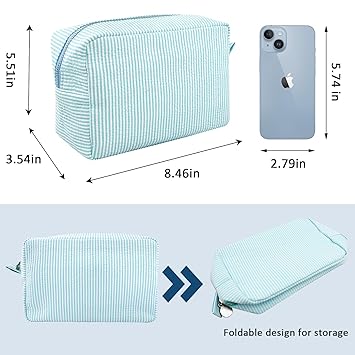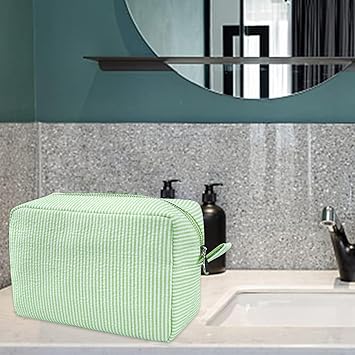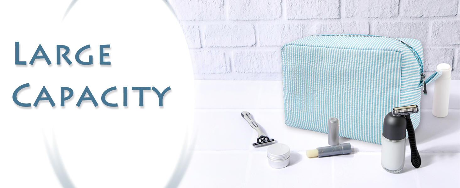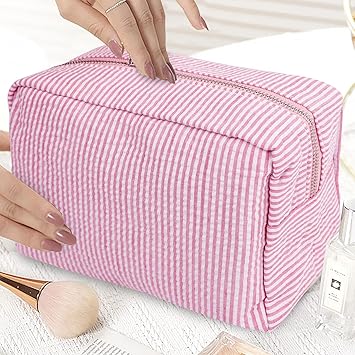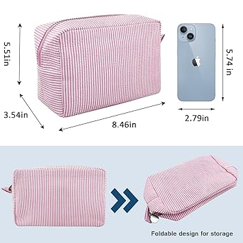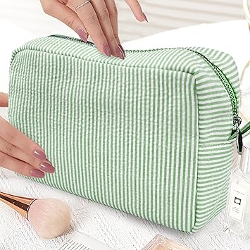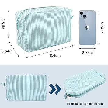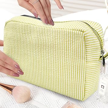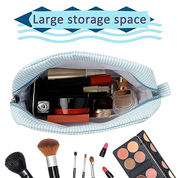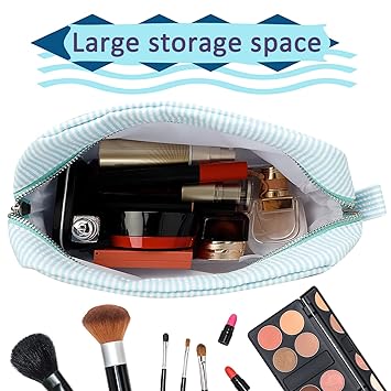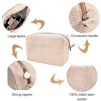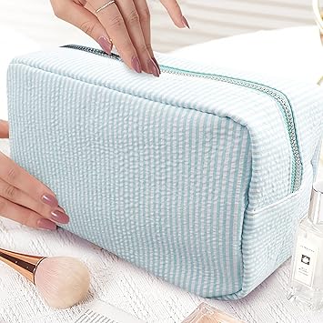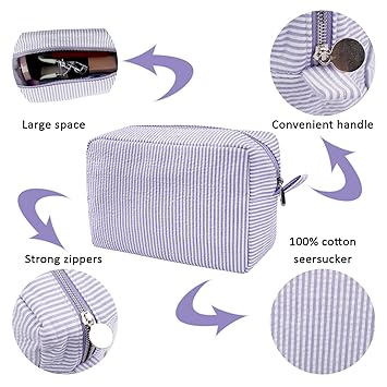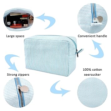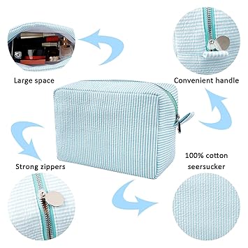 - Material:The Cosmetic Pouch is made of high-quality Seersucker, it’s soft to the touch. Easy clean up! Thanks to the lightweight and durability of our makeup pouch organizer, it can easily fit inside your handbags or tote bags without weighing your arms down