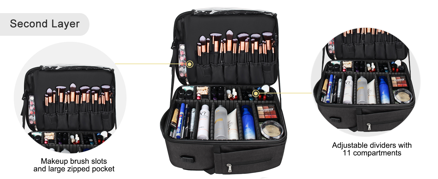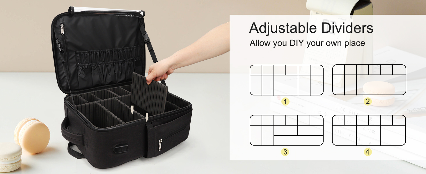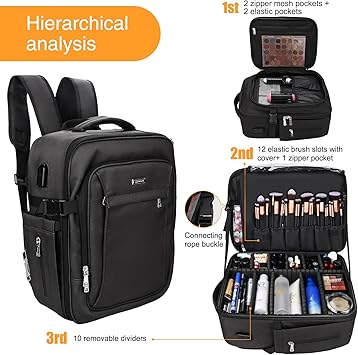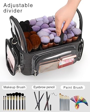 - ADJUSTABLE DIVIDIERS: The makeup backpack and brush bucket have adjustable dividers that can be adjusted according to the size and number of makeup brushes or brushes. Each divider is easy to insert or remove, and the adjustable dividers keep your makeup and brushes neat and organized. (Cosmetics and makeup brushes are not included)