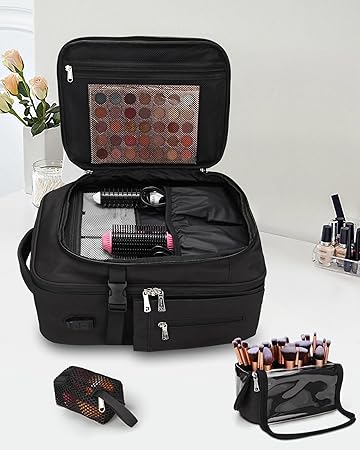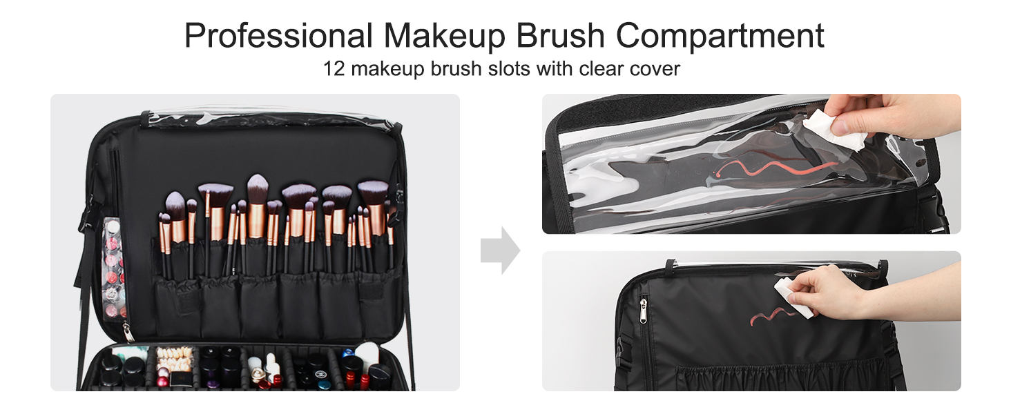 - EASY TO CARYY: The makeup backpack can be carried on the body during long trips, with multiple adjustable snaps, you can put the makeup backpack to slip off, or put it on the luggage to reduce stress. The brush bucket bag can not only be carried by hand and carried on one shoulder, but also can be hung on the waist when working, which is convenient for taking brushes.