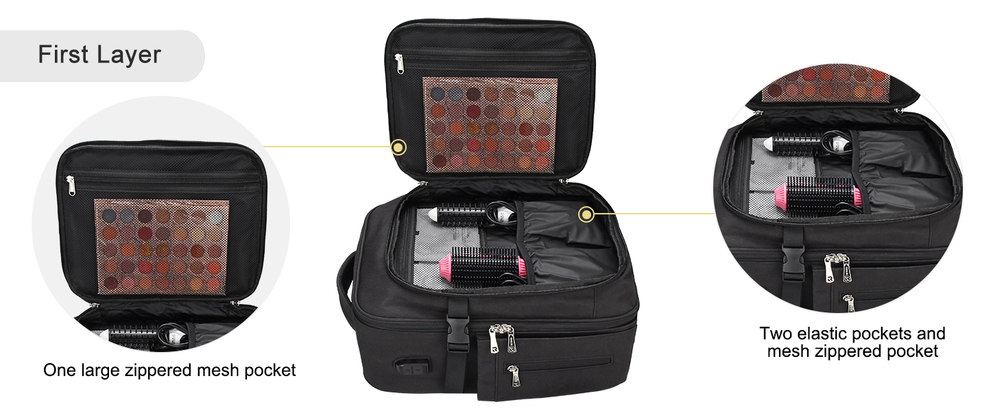 - PREMIUM MATERIAL: This makeup backpack and brush bucket bag is made of high quality nylon fabric, which is waterproof, sturdy and easy to clean. Using SBS high-quality metal zipper, smooth and durable. There are keyholes on the zipper to lock the backpack and prevent items from being lost.