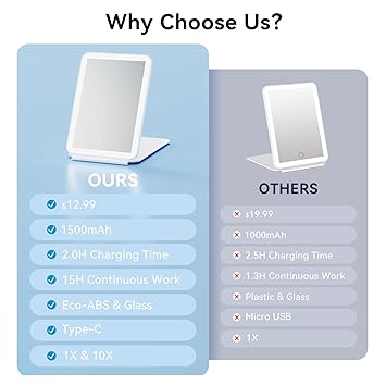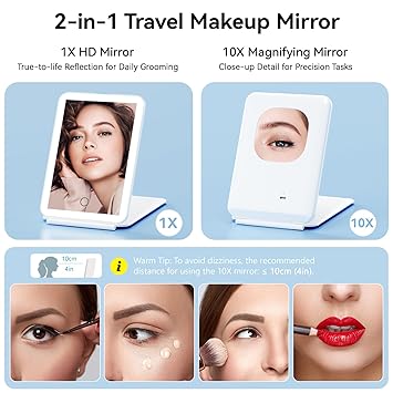 - 3-YEAR WARRANTY: The travel makeup mirror is made from premium ABS and glass materials; we offer a 3-year replacement warranty, so if you have any questions after your purchase, we are here for you; whether you're looking to buy it for your own use or to give a gift to someone special, our mirrors are the perfect choice