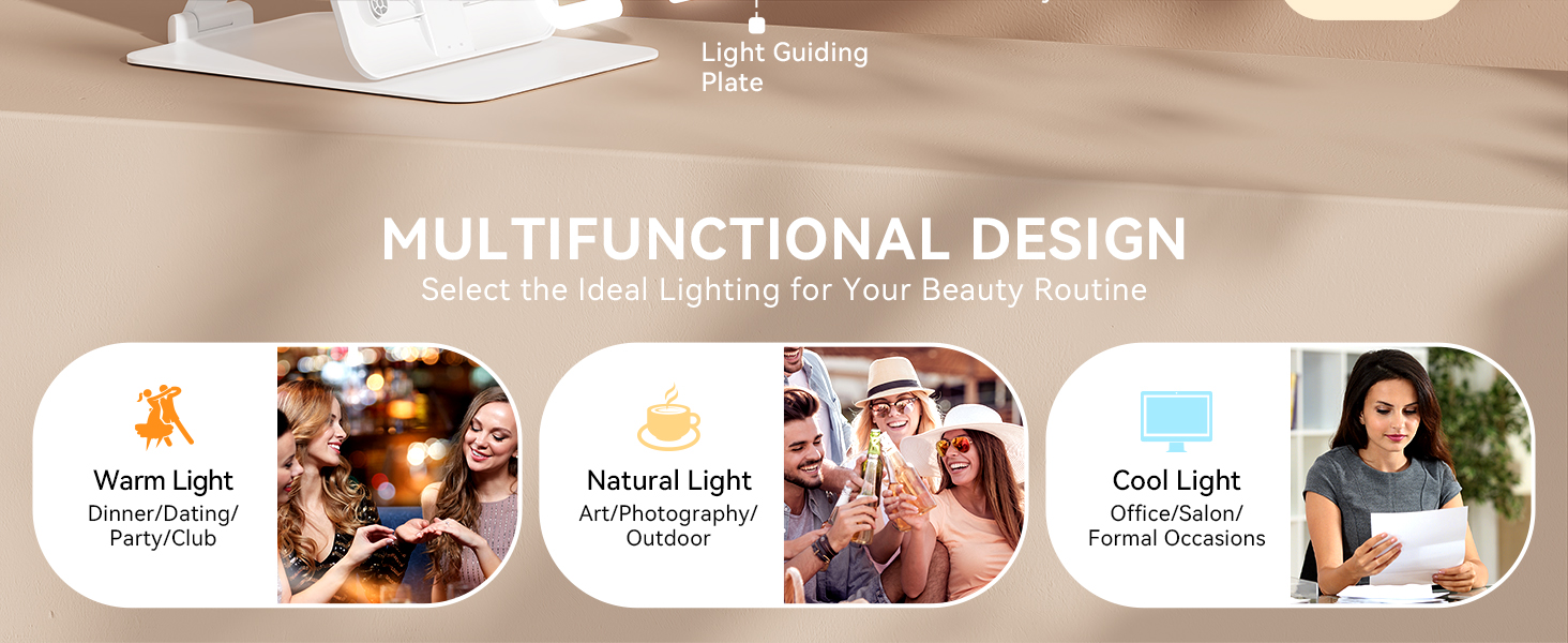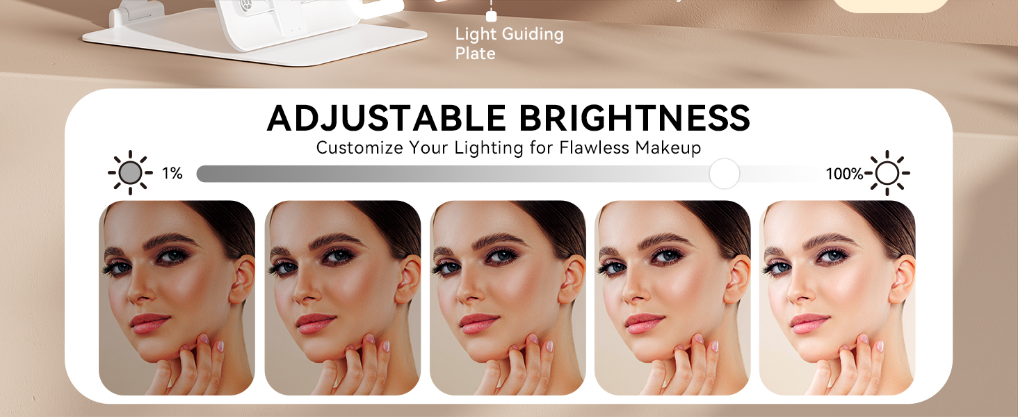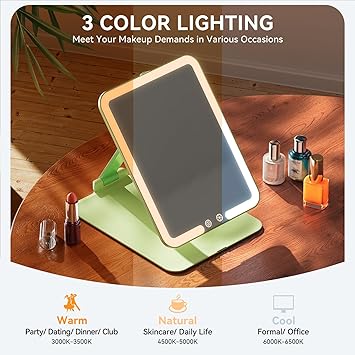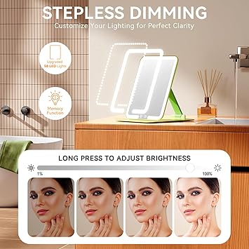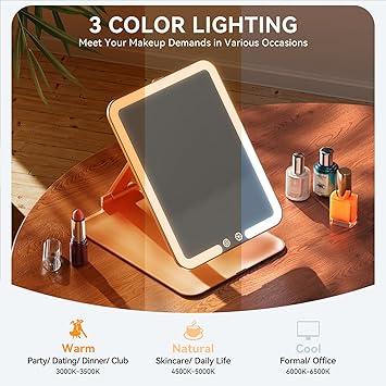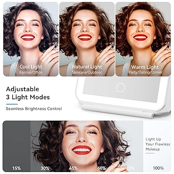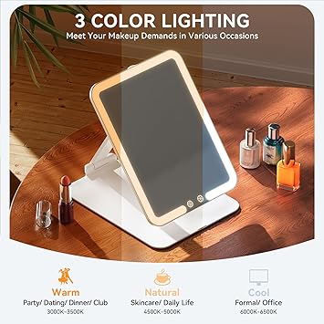 - 3 COLOR LIGHTING & DIMMABLE BRIGHTNESS: The travel light up mirror is equipped with 3 light modes: cool light, warm light, and natural light; you can switch the brightness with the infinitely dimmable feature to your desired level; the light is soft and non-glaring, which can take care of your eyes