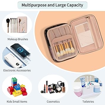 - 【Premium Material】This makeup bags surface material is made of high-quality PU leather. Durable, waterproof inside and outside, scratch-resistant, anti-collision, easy to keep clean. large view opening which can easy to access your cosmetics. (Note: Cosmetic Accessories Not included)