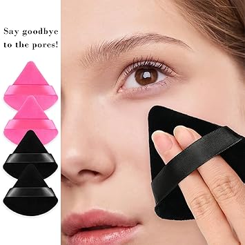 - ️Practicality: these cosmetic tools are designed with short plush and ribbons. Short plush can help keep your foundation. It won't get much powder, and it will be evenly distributed throughout the area. The design of the belt allows you to maintain the triangle powder puff steadily without sliding or falling off.