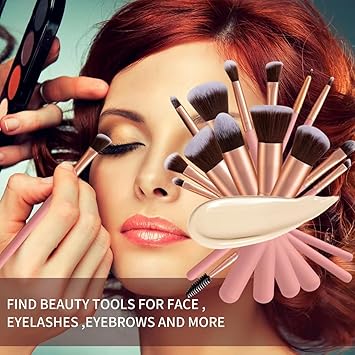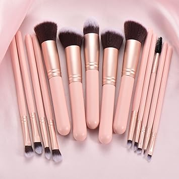 - 14 pink makeup brushes for foundation, blush, highlights, eyeshadow, concealer, eyebrow brush and more