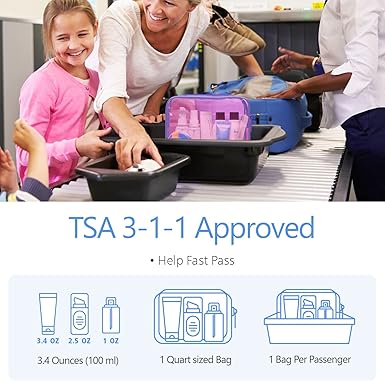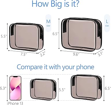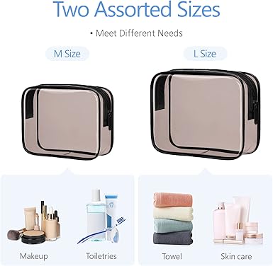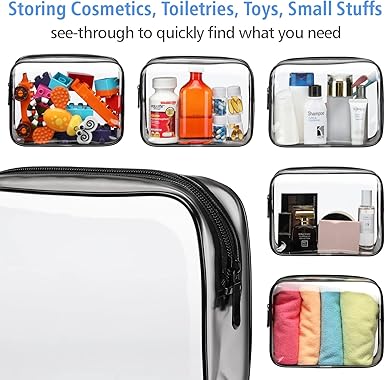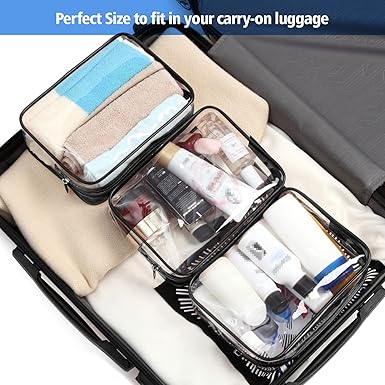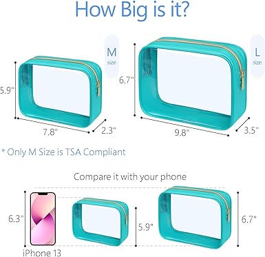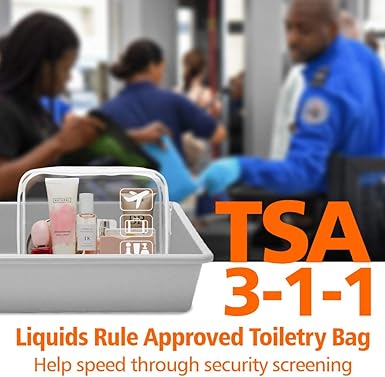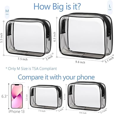 TSA Approved: The 7.5 x 5.5 x 2.2 inch clear travel toiletry bag strictly follows TSA 3-1-1 liquids rule for carry-on bag of all airlines, so you can easily and quickly pass through security screening with it in the airport