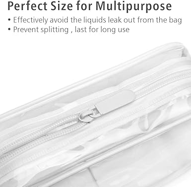 See-though & Reinforced Seams: The TSA approved toiletry bag is made of 0.5mm thick transparent PVC, make you easier to spot your items, and ensure the security staffs check the items quickly; Reinforced seams prevent the bag splitting easily, to effectively reduce the liquids leak out from this bag (zipper is not waterproof)