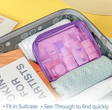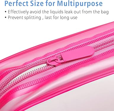 Portable & Reusable: This quart size bag perfectly suits travel bottles, also great to store cosmetics, toiletries, toys and small stuffs; Tips to remove the smell of the small travel toiletry bag: Please firstly wash the outside and inside of the clear makeup bag with soap and water; Please unzip the bag, then leave the bag in a well-ventilated place for a few days