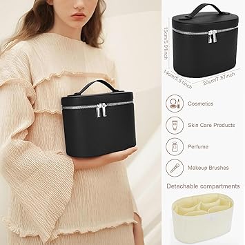 - Detachable Divider for Custom Storage: The removable divider lets you adjust space for bulky items (like palettes or bottles) or separate categories (makeup vs. skincare). Versatile for different needs while keeping contents tidy and protected.