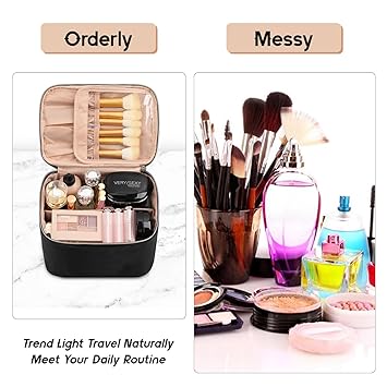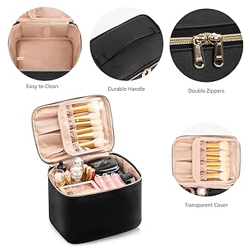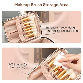 - Separate Brushes Compartment - Our make up bag comes with a separate space to hold brushes and protect them from dust.reliable zippers, nice lining,every detail is delicately made. The whole bag is padded to protect your cosmetics during transportation.