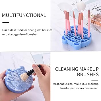 - New design: One product two functions. The makeup brush cleaner mat top side is used for cosmetic brush cleaning and the reverse side is used for drying the wet brushes or for the daily organize of the brushes or cosmetic. You can have a variety of different functions at a lower cost