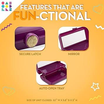 Touch up your glam wherever you go with the Caboodles Take It Tote travel makeup organizer. Featuring an auto-open tray and storage space underneath, this travel case can hold a variety of cosmetics, school supplies, hair accessories and anything else you care about keeping sorted. A large mirror on the underside of the lid makes the Take It Tote perfect for quick touch ups on the go. The compact size fits easily in a purse, backpack or gym bag and the snap-tight lid keeps your necessities secure while you’re on the move. As the legend goes, necessity and whimsy snapped together in 1986 when Vanna White was photographed using a Plano fishing tackle box to stow and organize her makeup. Seeing the need for a fun and functional cosmetics case, Plano Molding Company launched Caboodles in 1987 with the iconic On-The-Go Girl. Ever since, we've been empowering makeup mavens, neat freaks, and fashionistas to keep their essentials stylishly organized.