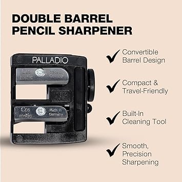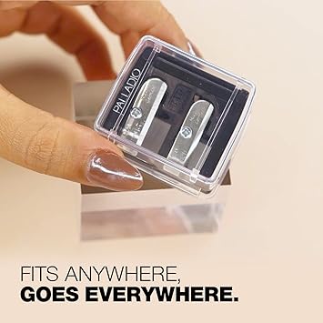 Palladio Double Barrel 3 in 1 Cosmetic Pencil Sharpener with Cover, Stainless Steel Blade, Size Adjuster, Essential for Small and Extra Large Lip Liner, Eyeliner, Brow Pencils