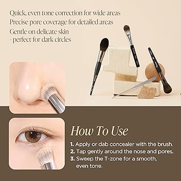 - Perfect for Pore and Texture Coverage Densely packed yet soft bristles help cover pores and skin irregularities with tapping motions, ideal for creating a porcelain-like finish using korean concealer