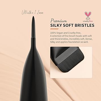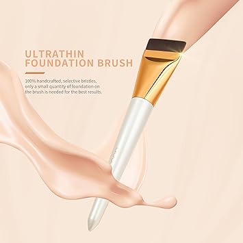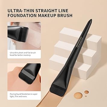 - Premium Ultra-Thin Streight Line Foundation Makeup Brush: Our foundation brush is handcrafted with the finest quality vegan synthetic bristles, made from glossy aluminum ferrule and multi-lacquered wooden handles. Ultra-thin fibers for easy to maintain and cleaning. Non-irritating to the skin. Try it out and use it to apply your liquid foundation, concealer, facial masks and lotion cream cosmetic products