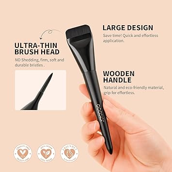 - Docolor Flat Foundation Brush: A large, flat, ultra-thin synthetic fiber brush with a fine, firm edge for even distribution and blending of liquid foundation, concealer, primer, emulsion, mud facial mask and cream cosmetic products on the face or body. The wide head design allows for more control on the level of coverage, which makes flexible application and building ultra-thin layers a job