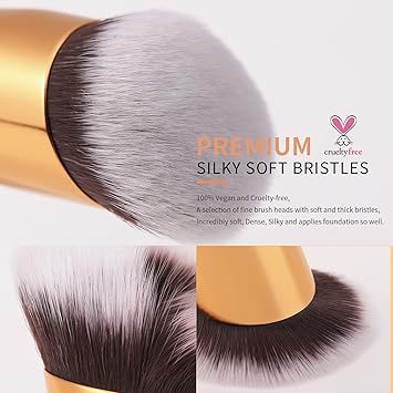 - NO Shedding,STREAK-FREE&Vegan:Docolor foundation brush for liquid makeup brush is a professional foundation brush that everyone can afford.It is crafted with high-grade synthetic fibers that resist breaking or shedding.Use this makeup brush as a foundation brush or facial mask brush, body brush to apply foundation, masks, creams or any other liquid product to your skin without trapping or absorbing the product.It does not soak up excessive amounts of product like other foundation makeup brushes