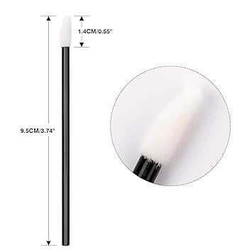 - Package & Size: 200PCS disposable lip brushes, enough quantity for you to use and change. The lip wands are 3.54''/9cm long, the cotton brush head is 0.47''/1.2cm, easily suited for your daily needs and perfect for lip gloss or lipstick