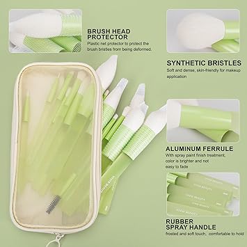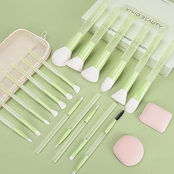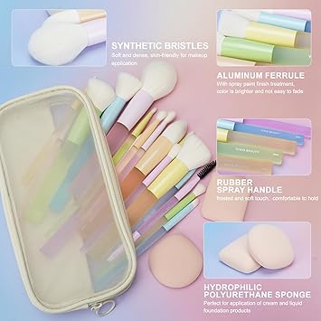 - 18-Piece All-In-One Brush Set: Includes essential brushes such as powder brush, foundation brush, eyeshadow brush, blending brush, and more. The set also features 2 sponge applicators for liquid foundation, making it perfect for a complete makeup routine.
