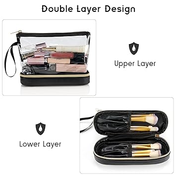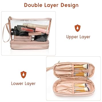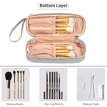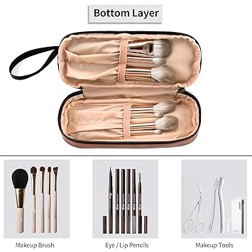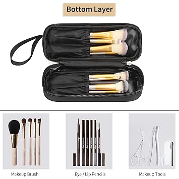 - Double-layer Design - The top layer can hold lipstick, eye shadow, loose powder, liquid foundation, bb cream, eyebrow pencil, eyeliner, etc.The lower layer can hold makeup brushes, eyeliner, eyebrow pencil, etc. Separated storage, keep neat!