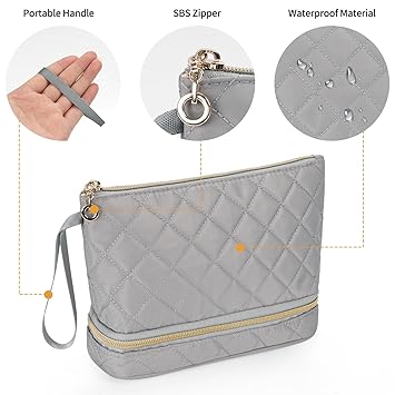 - Premium Material - Made of upgraded nylon material, soft, comfortable, lightweight and tough.It is waterproof, so you don’t have to worry about water splashing on the cosmetic bag when washing your hands.The small makeup bag uses SBS zipper, high-quality zipper is more durable.