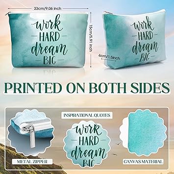 40 Pcs Employee Appreciation Gifts 10 Inspirational Canvas Makeup Bags Compact Mirrors Bulk Cosmetic Round Portable Pocket Mirror Thank You for Women (Motivation)