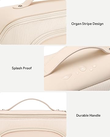 - Structured Design, Enhanced Protection: Are you worried that fragile cosmetics are not adequately protected? We have the solution for you. Crafted from high-quality PU leather and soft striped fabric, the bag maintains its shape without collapsing. The built-in padded sponge layer offers extra shock absorption to protect your fragile cosmetics during travel.