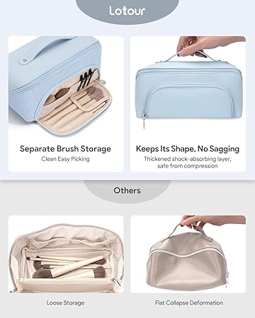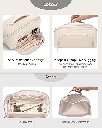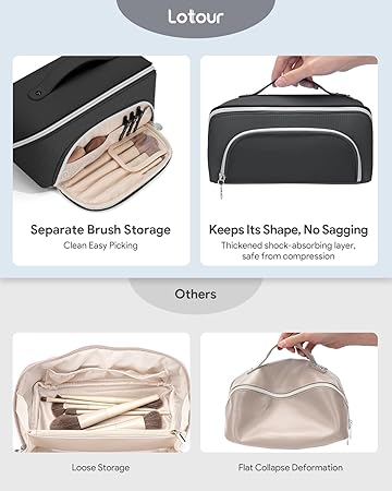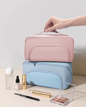 Lotour Makeup Bag Organizer Travel Cosmetic Bag, Large Capacity Skincare for Women Girls, Portable Pouch Open Flat Toiletry Essentials Toiletries Accessories
