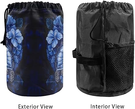 Poceacles Sea Turtle Flower Blue Makeup Bag for Women, Foldable Portable Storage Drawstring Cosmetic Bags Barrel Toiletry Case Organizer Travel Accessories